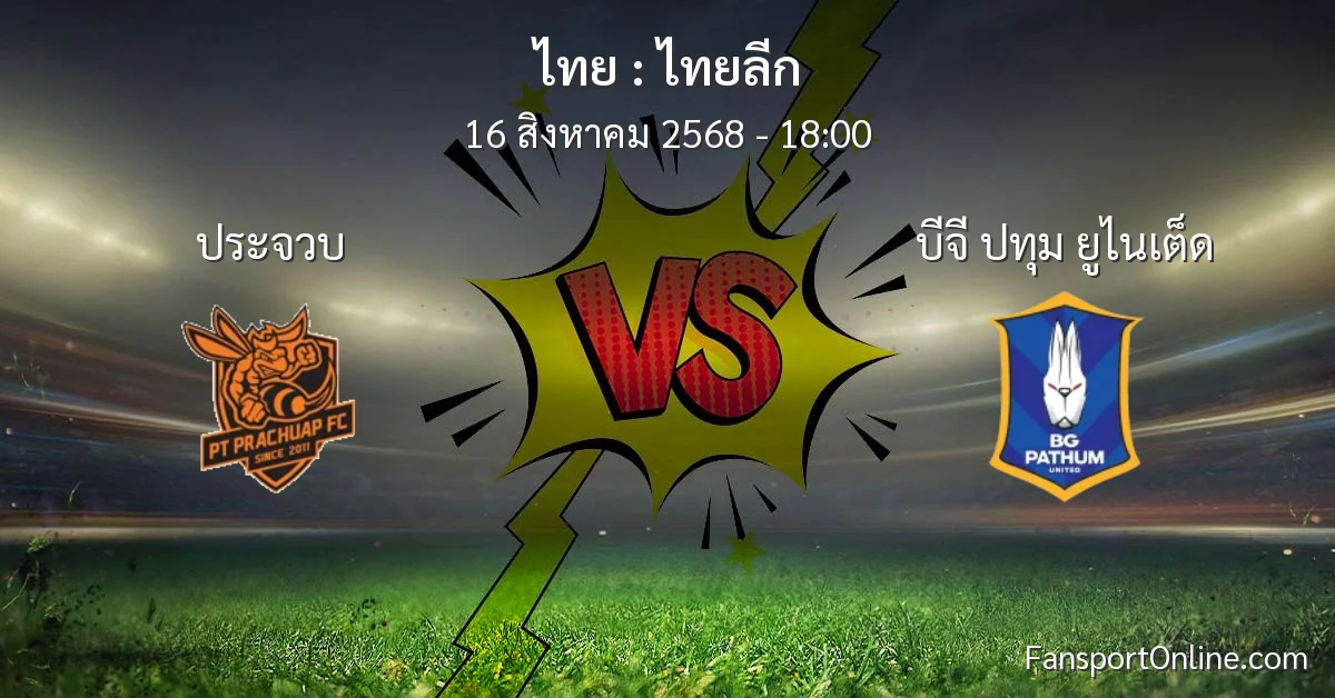 วิเคราะห์บอล ไทยลีก ระหว่าง ประจวบ พบ บีจี ปทุม ยูไนเต็ด (16 สิงหาคม 2568)