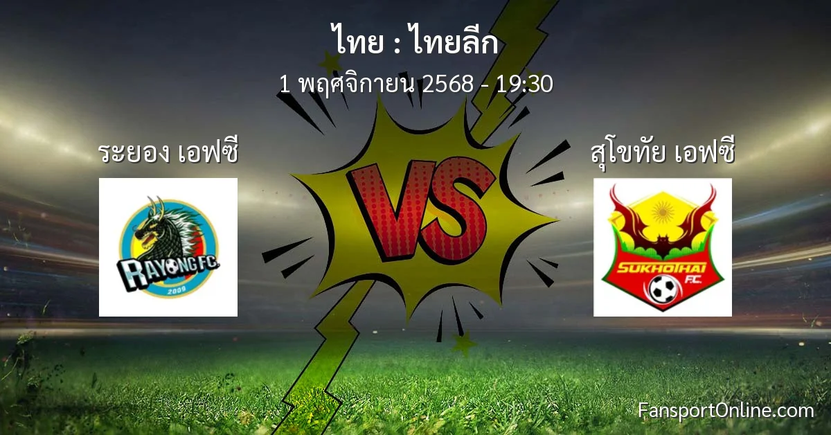 วิเคราะห์บอล ไทยลีก ระหว่าง ระยอง เอฟซี พบ สุโขทัย เอฟซี (1 พฤศจิกายน 2568)