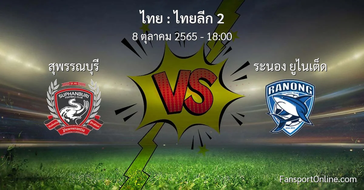 วิเคราะห์บอล ไทยลีก 2 ระหว่าง สุพรรณบุรี พบ ระนอง ยูไนเต็ด (8 ตุลาคม 2565)