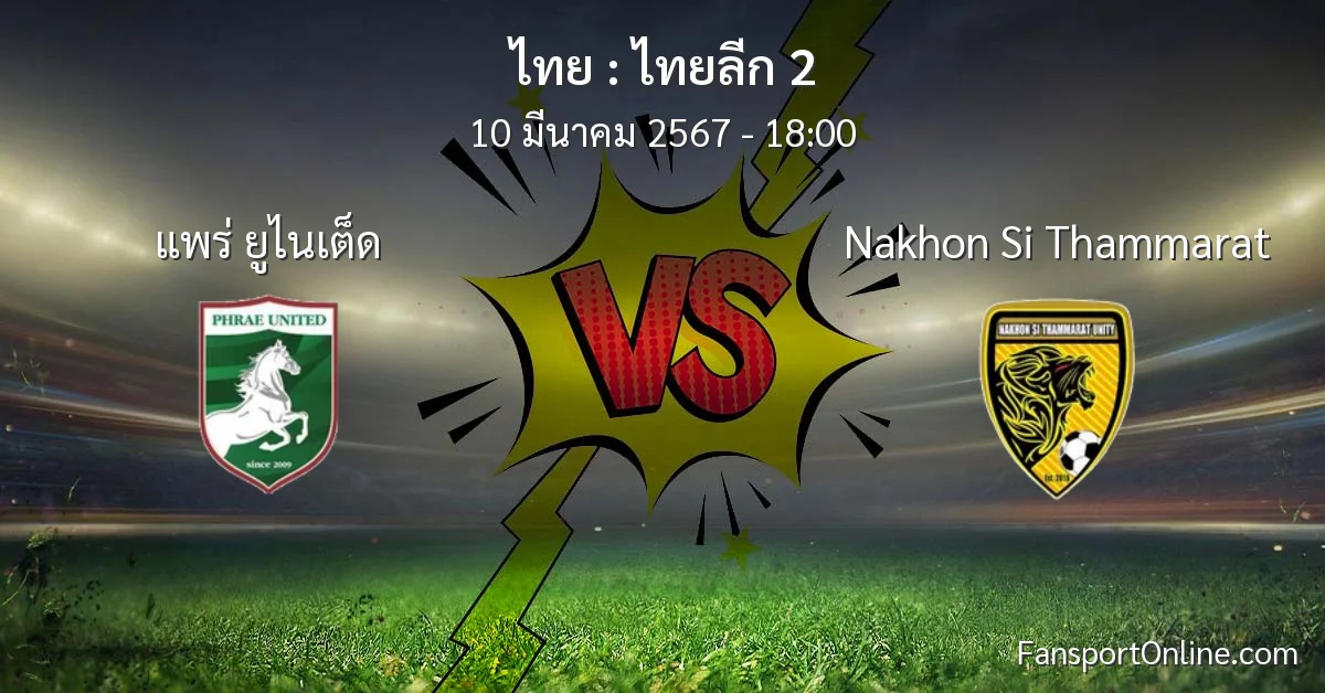 วิเคราะห์บอล ไทยลีก 2 ระหว่าง แพร่ ยูไนเต็ด พบ Nakhon Si Thammarat (10 มีนาคม 2567)