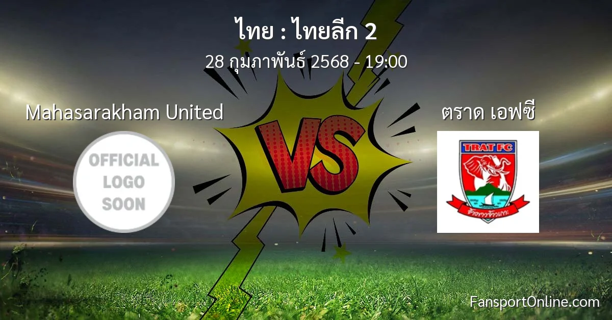 วิเคราะห์บอล ไทยลีก 2 ระหว่าง Mahasarakham United พบ ตราด เอฟซี (28 กุมภาพันธ์ 2568)