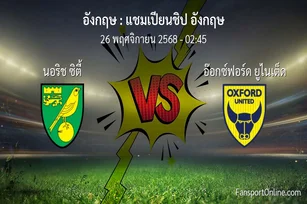 วิเคราะห์บอล แชมเปียนชิป อังกฤษ ระหว่าง นอริช ซิตี้ พบ อ๊อกซ์ฟอร์ด ยูไนเต็ด (26 พฤศจิกายน 2568)