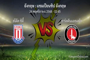 วิเคราะห์บอล แชมเปียนชิป อังกฤษ ระหว่าง สโต๊ค ซิตี้ พบ ชาร์ลตันแอธเลติก (26 พฤศจิกายน 2568)