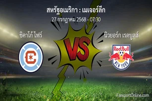 วิเคราะห์บอล เมเจอร์ลีก ระหว่าง ชิคาโก้ ไฟร์ พบ นิวยอร์ก เรดบูลส์ (27 กรกฎาคม 2568)