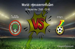 วิเคราะห์บอล ฟุตบอลกระชับมิตร ระหว่าง ไนจีเรีย พบ กานา (29 พฤษภาคม 2568)