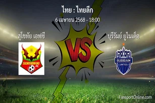 วิเคราะห์บอล ไทยลีก ระหว่าง สุโขทัย เอฟซี พบ บุรีรัมย์ ยูไนเต็ด (6 เมษายน 2568)
