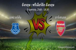 วิเคราะห์บอล พรีเมียร์ลีก อังกฤษ ระหว่าง เอฟเวอร์ตัน พบ อาร์เซนอล (5 เมษายน 2568)