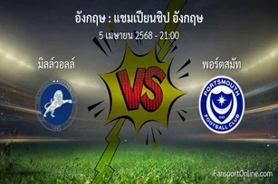 วิเคราะห์บอล แชมเปียนชิป อังกฤษ ระหว่าง มิลล์วอลล์ พบ พอร์ตสมัท (5 เมษายน 2568)