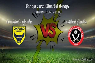 วิเคราะห์บอล แชมเปียนชิป อังกฤษ ระหว่าง อ๊อกซ์ฟอร์ด ยูไนเต็ด พบ เชฟฟีลด์ ยูไนเต็ด (5 เมษายน 2568)