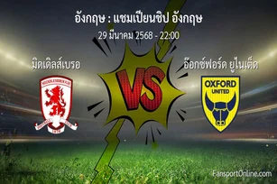 วิเคราะห์บอล แชมเปียนชิป อังกฤษ ระหว่าง มิดเดิลส์เบรอ พบ อ๊อกซ์ฟอร์ด ยูไนเต็ด (29 มีนาคม 2568)
