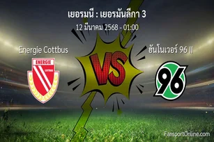วิเคราะห์บอล เยอรมันลีกา 3 ระหว่าง Energie Cottbus พบ ฮันโนเวอร์ 96 II (12 มีนาคม 2568)