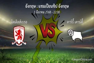 วิเคราะห์บอล แชมเปียนชิป อังกฤษ ระหว่าง มิดเดิลส์เบรอ พบ ดาร์บี้ เคาน์ตี้ (1 มีนาคม 2568)