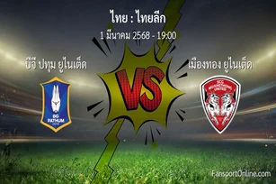 วิเคราะห์บอล ไทยลีก ระหว่าง บีจี ปทุม ยูไนเต็ด พบ เมืองทอง ยูไนเต็ด (1 มีนาคม 2568)