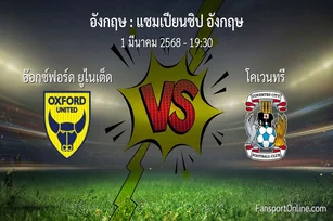 วิเคราะห์บอล แชมเปียนชิป อังกฤษ ระหว่าง อ๊อกซ์ฟอร์ด ยูไนเต็ด พบ โคเวนทรี (1 มีนาคม 2568)