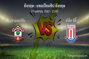 วิเคราะห์บอล แชมเปียนชิป อังกฤษ ระหว่าง เซาแธมป์ตัน พบ สโต๊ค ซิตี้ (27 เมษายน 2567)