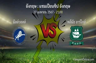 วิเคราะห์บอล แชมเปียนชิป อังกฤษ ระหว่าง มิลล์วอลล์ พบ พลีมัธ อาร์ไกล์ (27 เมษายน 2567)