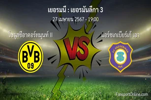 วิเคราะห์บอล เยอรมันลีกา 3 ระหว่าง โบรุสซีอาดอร์ทมุนท์ II พบ แอร์ซเกเบียร์เก้ เอา (27 เมษายน 2567)