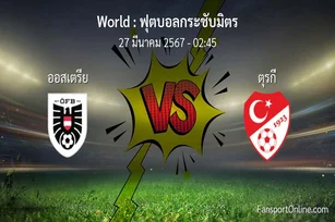 วิเคราะห์บอล ฟุตบอลกระชับมิตร ระหว่าง ออสเตรีย พบ ตุรกี (27 มีนาคม 2567)