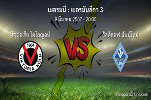 วิเคราะห์บอล เยอรมันลีกา 3 ระหว่าง วิคตอเรีย โคโลญจน์ พบ วัลด์ฮอฟ มันน์ไฮม์ (9 มีนาคม 2567)