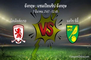 วิเคราะห์บอล แชมเปียนชิป อังกฤษ ระหว่าง มิดเดิลส์เบรอ พบ นอริช ซิตี้ (7 มีนาคม 2567)