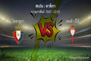 วิเคราะห์บอล ลาลิกา ระหว่าง โอซาซูน่า พบ เซลต้า บีโก้ (4 กุมภาพันธ์ 2567)