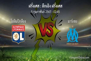 วิเคราะห์บอล ลีกเอิง ฝรั่งเศส ระหว่าง โอลิมปิกลียง พบ มาร์เซย (5 กุมภาพันธ์ 2567)