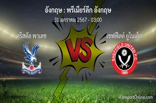 วิเคราะห์บอล พรีเมียร์ลีก อังกฤษ ระหว่าง คริสตัล พาเลซ พบ เชฟฟีลด์ ยูไนเต็ด (31 มกราคม 2567)