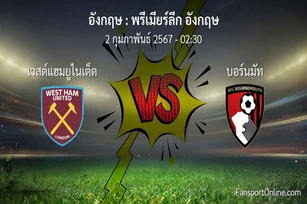 วิเคราะห์บอล พรีเมียร์ลีก อังกฤษ ระหว่าง เวสต์แฮมยูไนเต็ด พบ บอร์นมัท (2 กุมภาพันธ์ 2567)