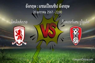 วิเคราะห์บอล แชมเปียนชิป อังกฤษ ระหว่าง มิดเดิลส์เบรอ พบ ร็อตเธอร์แฮม ยูไนเต็ด (20 มกราคม 2567)