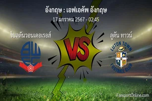 วิเคราะห์บอล เอฟเอคัพ อังกฤษ ระหว่าง โบลตันวอนเดอเรอส์ พบ ลูตัน ทาวน์ (17 มกราคม 2567)