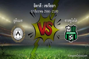 วิเคราะห์บอล เซเรียอา ระหว่าง อูดีเนเซ พบ ซาสซูโอโล่ (17 ธันวาคม 2566)