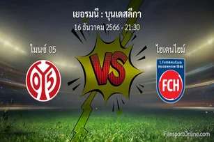 วิเคราะห์บอล บุนเดสลีกา ระหว่าง ไมนซ์ 05 พบ ไฮเดนไฮม์ (16 ธันวาคม 2566)