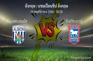 วิเคราะห์บอล แชมเปียนชิป อังกฤษ ระหว่าง เวสต์บรอมมิช พบ อิปสวิช ทาวน์ (26 พฤศจิกายน 2566)