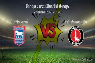 วิเคราะห์บอล แชมเปียนชิป อังกฤษ ระหว่าง อิปสวิช ทาวน์ พบ ชาร์ลตันแอธเลติก (22 ตุลาคม 2568)