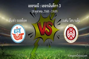 วิเคราะห์บอล เยอรมันลีกา 3 ระหว่าง ฮันซ่า รอสต็อค พบ เวเฮ่น วีสบาเด้น (18 ตุลาคม 2568)