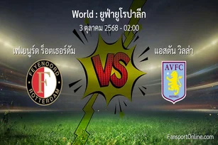 วิเคราะห์บอล ยูฟ่ายูโรปาลีก ระหว่าง เฟเยนูร์ด ร็อตเธอร์ดัม พบ แอสตัน วิลล่า (3 ตุลาคม 2568)