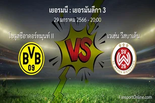 วิเคราะห์บอล เยอรมันลีกา 3 ระหว่าง โบรุสซีอาดอร์ทมุนท์ II พบ เวเฮ่น วีสบาเด้น (29 มกราคม 2566)