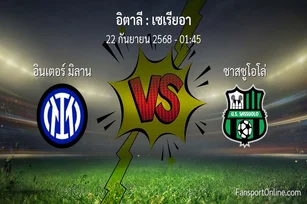 วิเคราะห์บอล เซเรียอา ระหว่าง อินเตอร์ มิลาน พบ ซาสซูโอโล่ (22 กันยายน 2568)