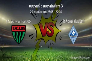 วิเคราะห์บอล เยอรมันลีกา 3 ระหว่าง FC Schweinfurt 05 พบ วัลด์ฮอฟ มันน์ไฮม์ (29 พฤศจิกายน 2568)