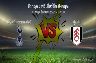 วิเคราะห์บอล พรีเมียร์ลีก อังกฤษ ระหว่าง ทอตนัมฮอตสเปอร์ พบ ฟูแล่ม (30 พฤศจิกายน 2568)