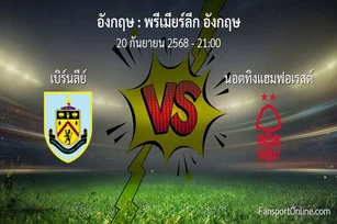 วิเคราะห์บอล พรีเมียร์ลีก อังกฤษ ระหว่าง เบิร์นลีย์ พบ นอตทิงแฮมฟอเรสต์ (20 กันยายน 2568)