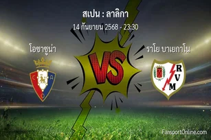วิเคราะห์บอล ลาลิกา ระหว่าง โอซาซูน่า พบ ราโย บาเยกาโน (14 กันยายน 2568)