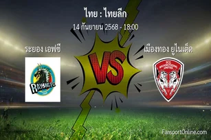 วิเคราะห์บอล ไทยลีก ระหว่าง ระยอง เอฟซี พบ เมืองทอง ยูไนเต็ด (14 กันยายน 2568)