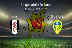 วิเคราะห์บอล พรีเมียร์ลีก อังกฤษ ระหว่าง ฟูแล่ม พบ ลีดส์ ยูไนเต็ด (13 กันยายน 2568)