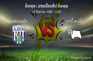 วิเคราะห์บอล แชมเปียนชิป อังกฤษ ระหว่าง เวสต์บรอมมิช พบ ดาร์บี้ เคาน์ตี้ (13 กันยายน 2568)