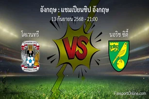 วิเคราะห์บอล แชมเปียนชิป อังกฤษ ระหว่าง โคเวนทรี พบ นอริช ซิตี้ (13 กันยายน 2568)