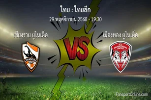 วิเคราะห์บอล ไทยลีก ระหว่าง เชียงราย ยูไนเต็ด พบ เมืองทอง ยูไนเต็ด (29 พฤศจิกายน 2568)