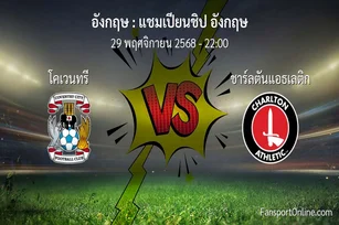 วิเคราะห์บอล แชมเปียนชิป อังกฤษ ระหว่าง โคเวนทรี พบ ชาร์ลตันแอธเลติก (29 พฤศจิกายน 2568)