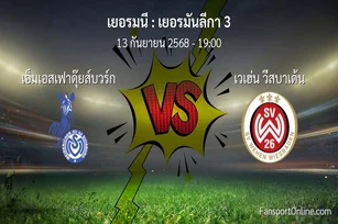วิเคราะห์บอล เยอรมันลีกา 3 ระหว่าง เอ็มเอสเฟาดุ๊ยส์บวร์ก พบ เวเฮ่น วีสบาเด้น (13 กันยายน 2568)