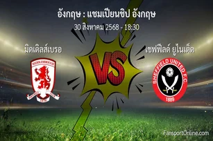 วิเคราะห์บอล แชมเปียนชิป อังกฤษ ระหว่าง มิดเดิลส์เบรอ พบ เชฟฟีลด์ ยูไนเต็ด (30 สิงหาคม 2568)
